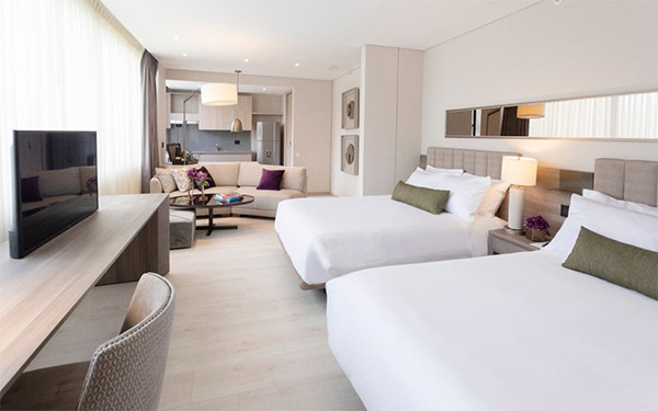 Este espacio cuenta con suites áreas desde 33 hasta 56 metros cuadrados, amplias camas, sábanas de 400 hilos, artículos de tocador de las reconocidas marcas Salvatore Ferragamo y L´occitane, cocina, comedor, baños lujosos, televisores hasta 4K con sistema satelital. Las ventanas generosas llenan cada espacio vital con luz natural y vista al paisaje urbano de Medellín.